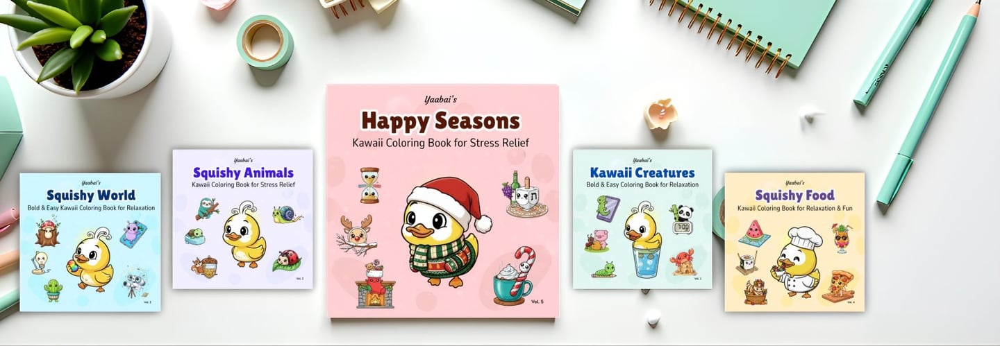 Our mission is to capture the irresistible charm of the kawaii style—inspired by our lovable main character, the crested duck Yaabai—and translate it into an accessible and therapeutic coloring experience.